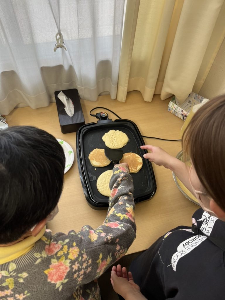 そして、今日のおやつは、レクリエーションとして鯉のぼりパンケーキを作りました!
