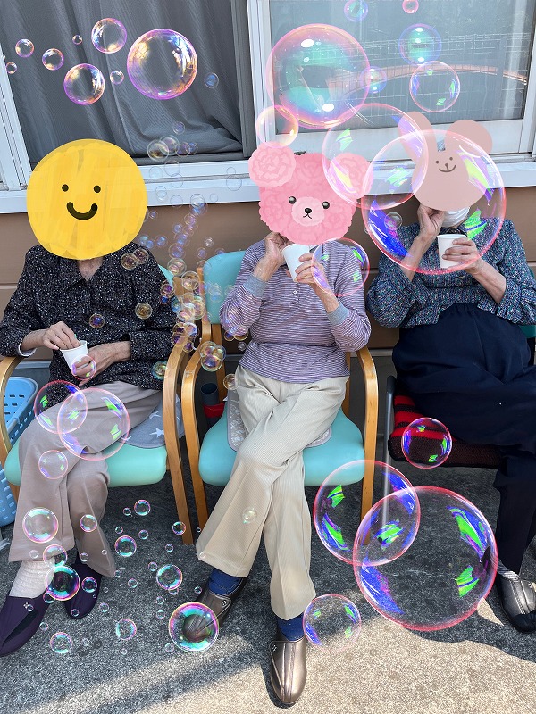 シャボン玉で楽しみました( ´ з`)y━・o○