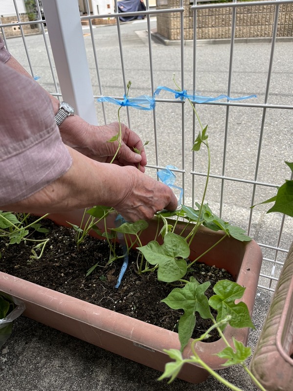 今日は、朝の涼しい🎐時間に、お庭のお手入れを利用者さまと一緒にしました🌳