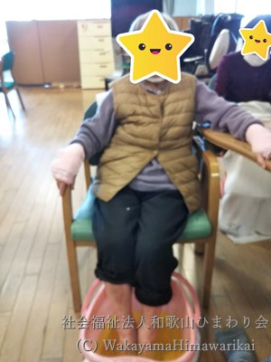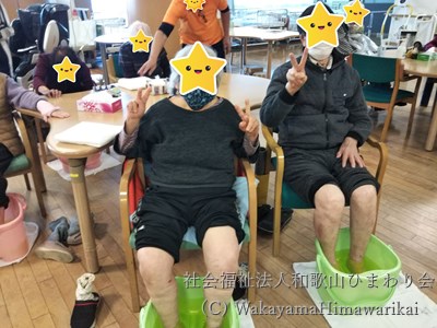 デイサービスセンター広川苑では、ほっこり温まる“足湯”を実施しました。デイフロアはファンヒーターとストーブでポカポカですが、どうしても足先や指先の先端は冷たくなってしまいがちです。