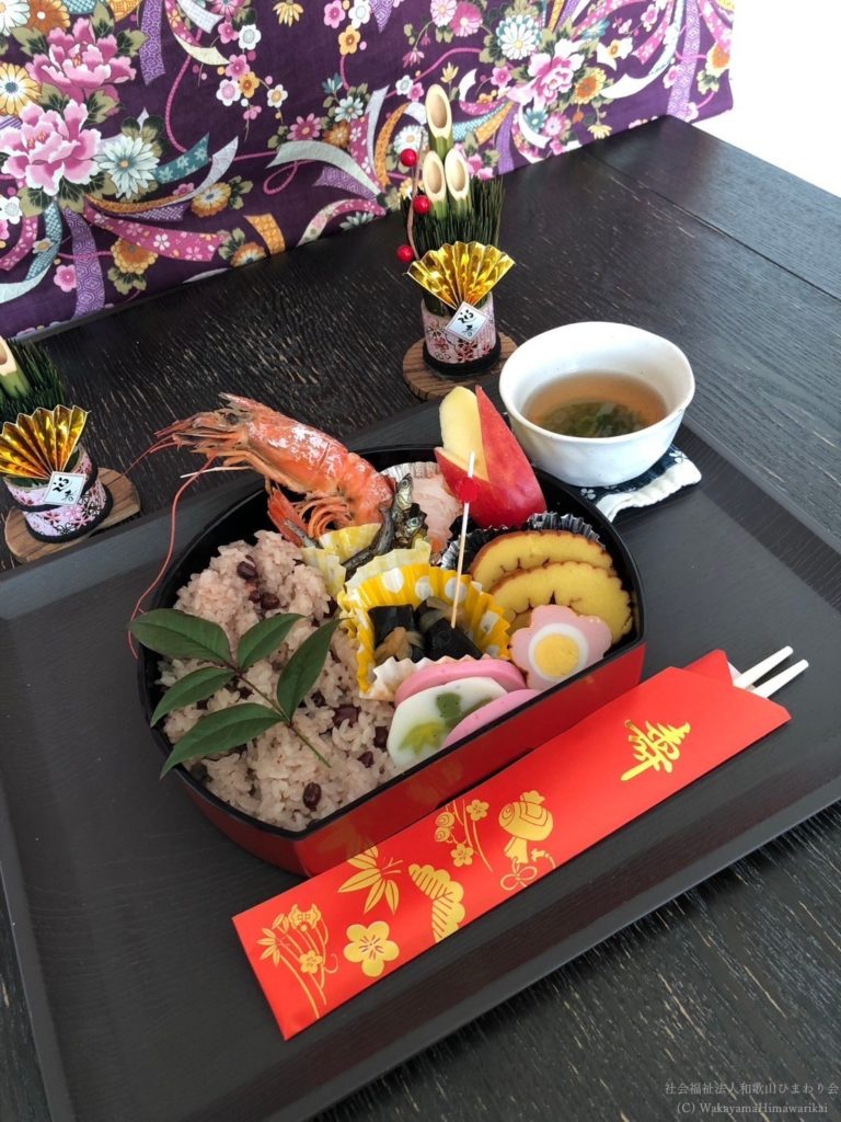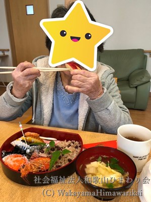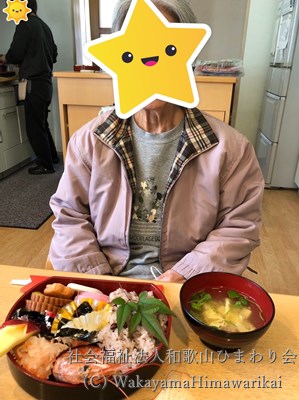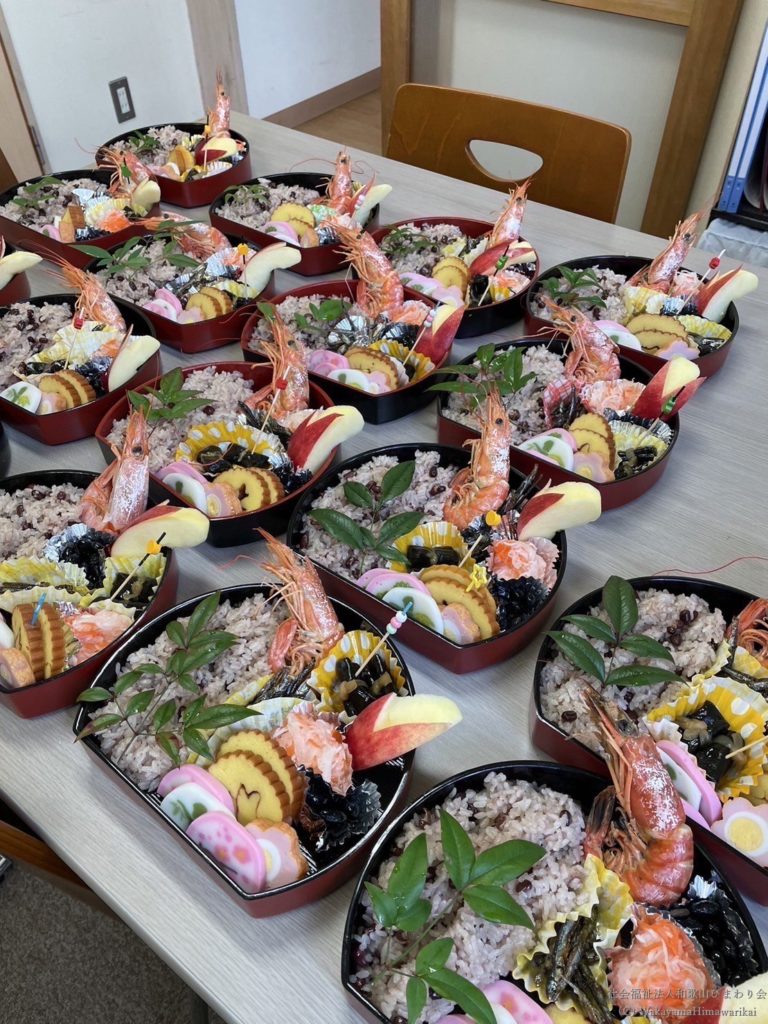 グループホーム向日葵倶楽部では、お正月は職員手作りのおせち料理でお祝いをしています。